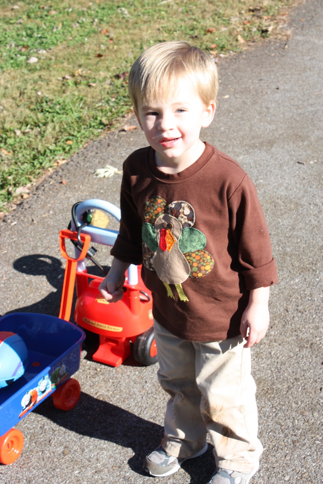 Once Lolly and Pops arrived, he ran to the truck to greet them. And also to get his toys out! And, just in case you were wondering that is dirt on his bottom.